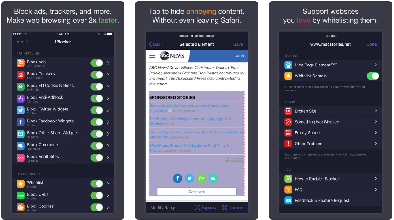 ブロックする対象を細かく設定できるアプリ「1Blocker」