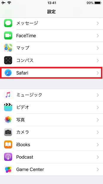 1.「設定」→「Safari」の順にタップ