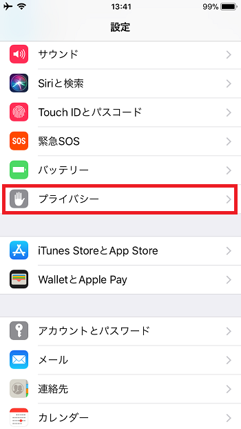 1.「設定」→「プライバシー」の順にタップ