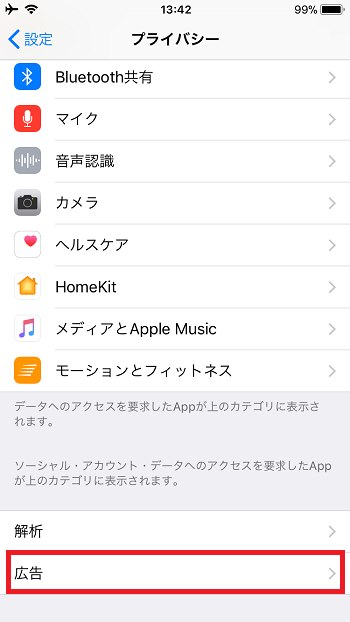 2.「広告」→「追跡型広告を制限」を「オン」にする