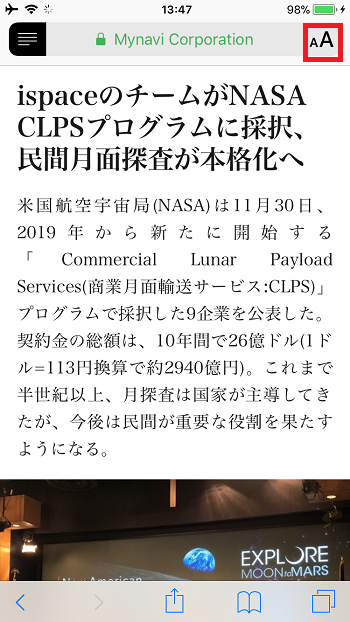 特別な設定は必要なく、Safariを利用しながら、必要な時だけこの機能を呼び出せます。 Safariのリーダー表示を使う方法は簡単です。